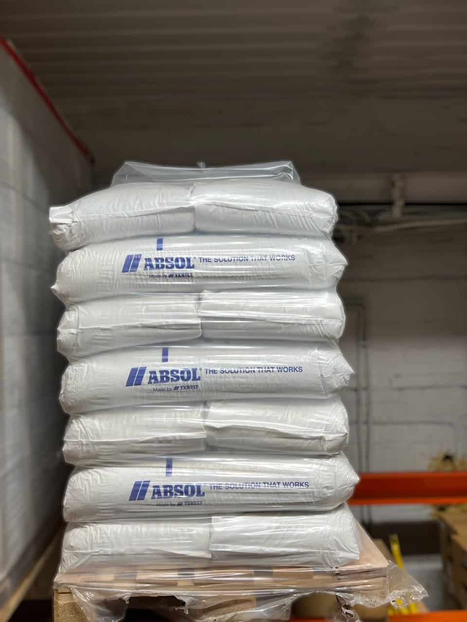 - Absol är en naturlig absorbent som är framställd av sand, kalk, cement och vatten.