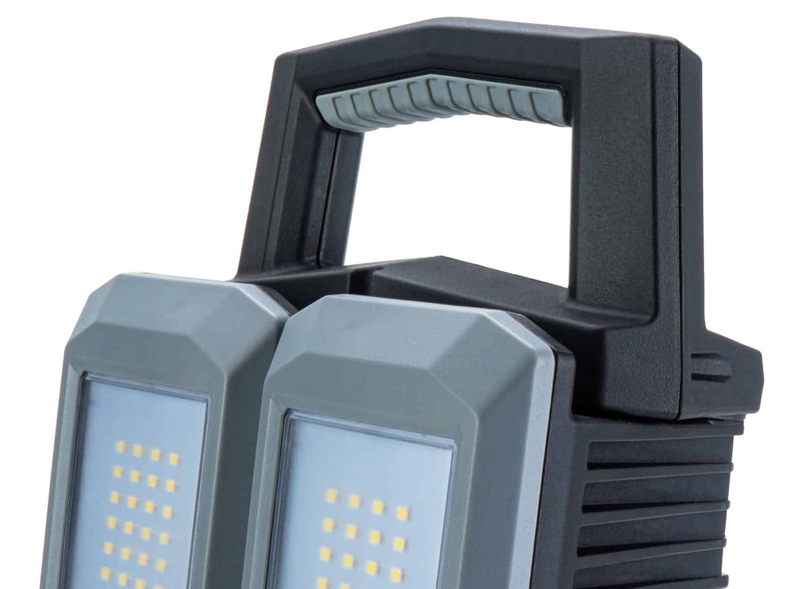Med sina 4600 lumen förvandlar W6r natt till dag och gör det möjligt att utföra arbete på de mörkaste platserna eller när som helst under dygnet. Denna arbetsbelysning erbjuder unik mångsidighet med sina 180 ° roterbara ljuspaneler och 90 ° justerbart handtag. W6r kan till och med tändas i två riktningar samtidigt, vilket gör det möjligt att lysa upp även stora rum med enbart denna arbetsbelysning. Med sitt massiva Li-Ion-batteri kan W6r leverera kraftfull belysning under många timmar. Med ett extra batteri säkrar du behovet av kontinuerlig kraftfull belysning. Det starka Li-Ion-batteriet har också en powerbank-funktion med inbyggt USB-uttag. W6r är konstruerad i en förstärkt plastkomposition, vilket gör denna arbetsbelysning perfekt för byggarbetsplatsen. Dessutom har W6r en IP54-klassificering som gör den damm- och vattentät.