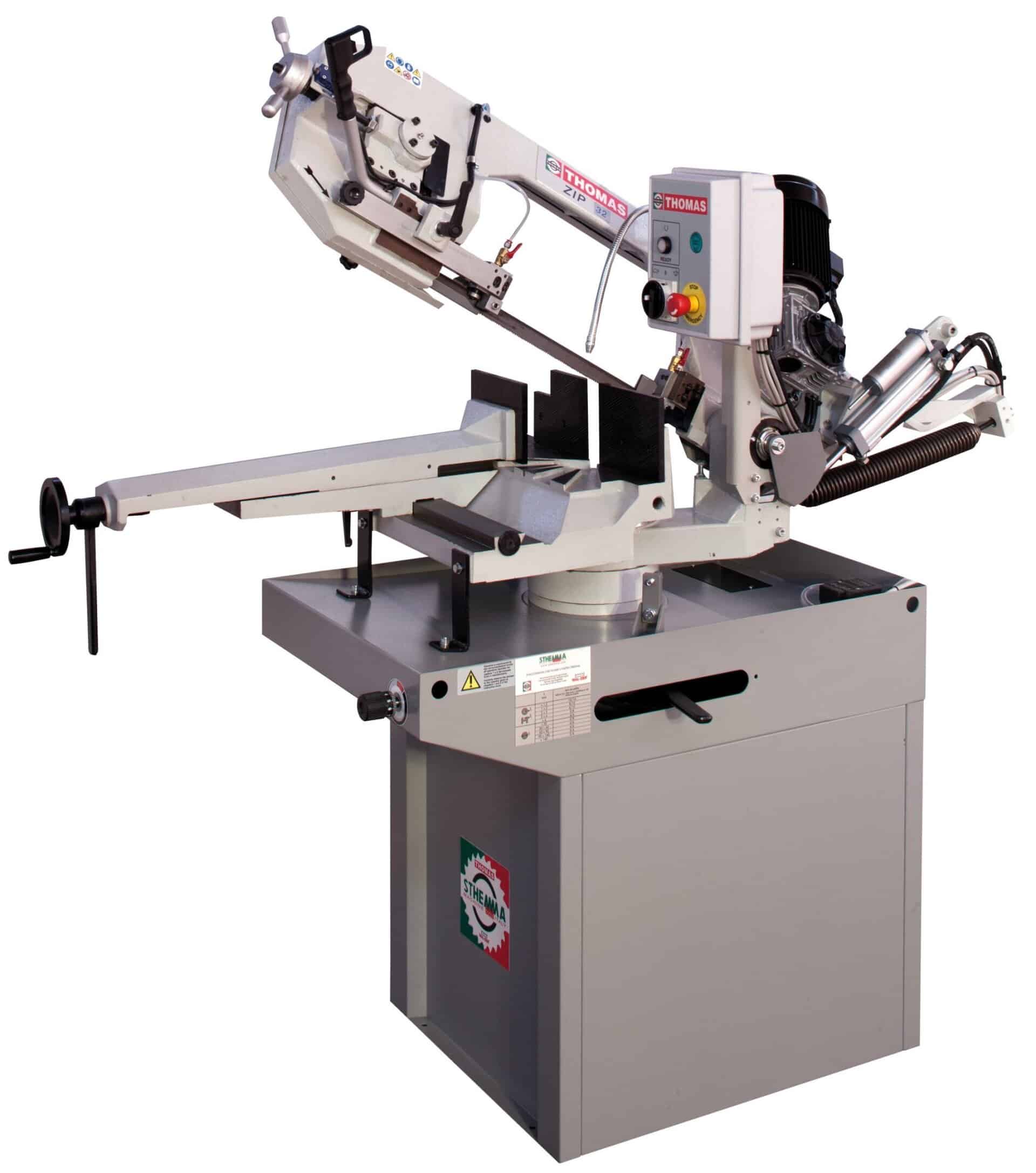 Bandsåg DA med hydraulisk kontrollerad nedmatning med ställbar hastighet för optimerad kapning. Genom att trycka ”PUSH” på regulatorn för hydrauliken så startar sågningen och sågbygeln går ner. Genom att trycka ”PULL” så stannar den, när sågningen är klar så stannar sågen och även kylpumpen automatiskt. Sågen gerar från 0° till 60° höger och 0° till 45° åt vänster. Växellådan går i oljebad. Sågramen och skruvstycket är i gjutjärn. Säkerhetsbrytare på bladskyddet och bladspänningen. Två hastigheter. Precisionsstyrning av bladet med hårdmetallklackar och justerbara lager.