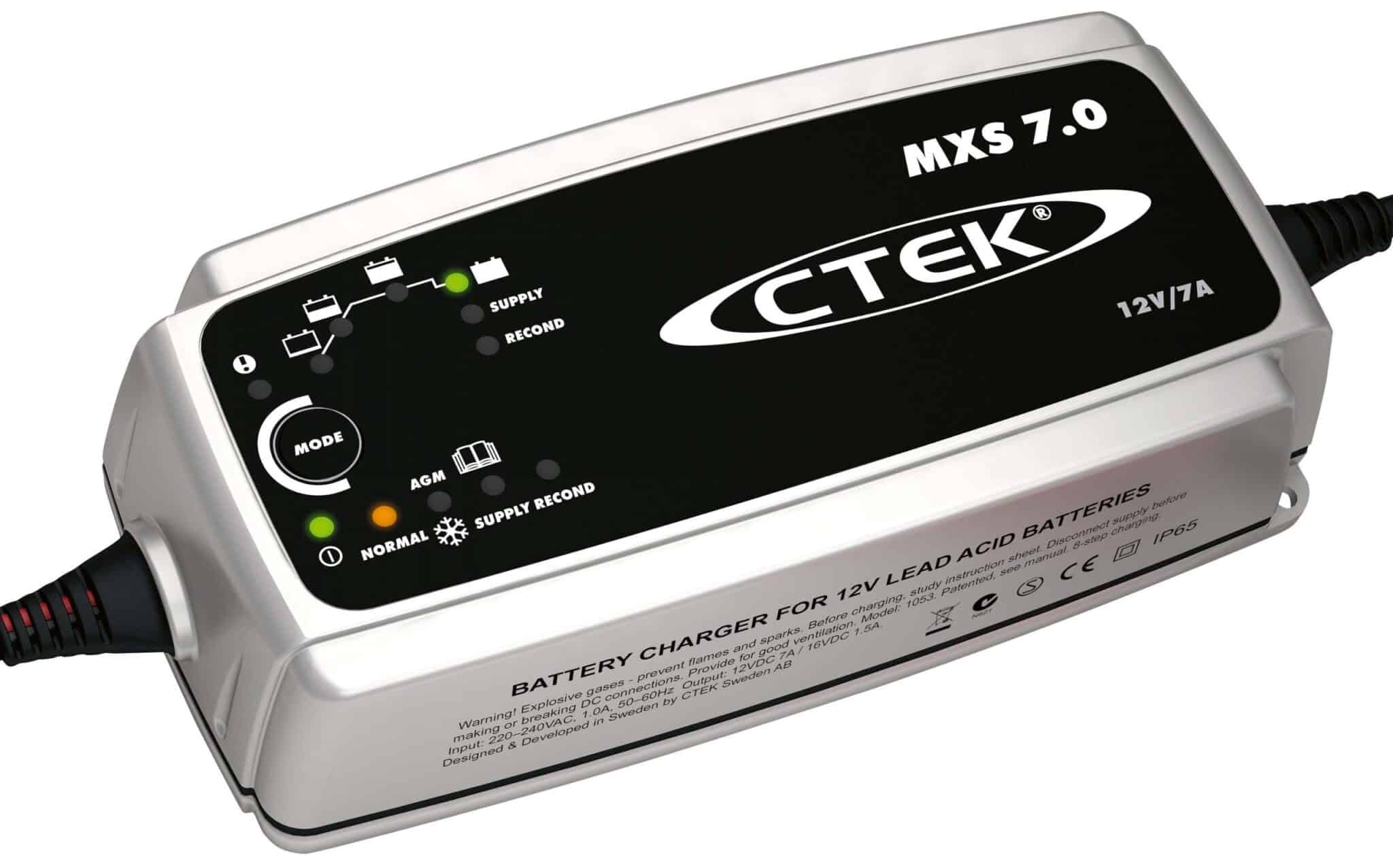 MXS 7.0 är den perfekta universalladdaren för 12V. Den är idealisk för större batterier i husvagnar, husbilar, båtar och bilar. MXS 7.0 har funktioner som undersöker och visar om batteriet kan laddas och bibehålla laddning, en speciell rekonditioneringsfunktion som återställer skiktade och djupt urladdade batterier, unik underhållsladdning och ett läge för optimerad laddning under kalla vinterdagar. Den klarar dessutom laddning av krävande batterier (t.ex. Optima). MXS 7.0 har också en matningsfunktion så att batteriet kan kopplas bort från fordonet utan att viktiga inställningar går förlorade.