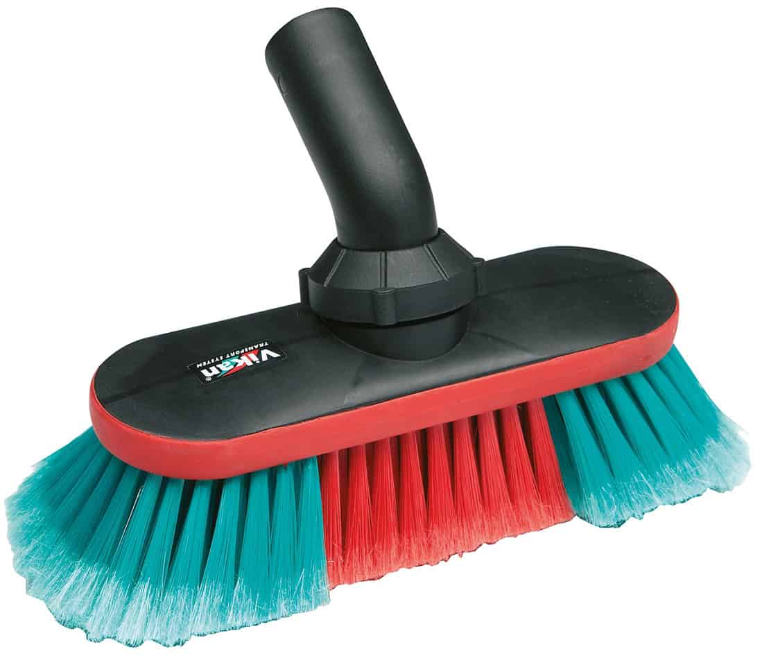 Justerbar vattenmatad borste. Det enkelt justerbara borsthuvudet och de vinklade fibrerna säkerställer effektiv rengöring av svåråtkomliga ytor. Gummikanten minskar risken för repning av de rengjorda ytorna.