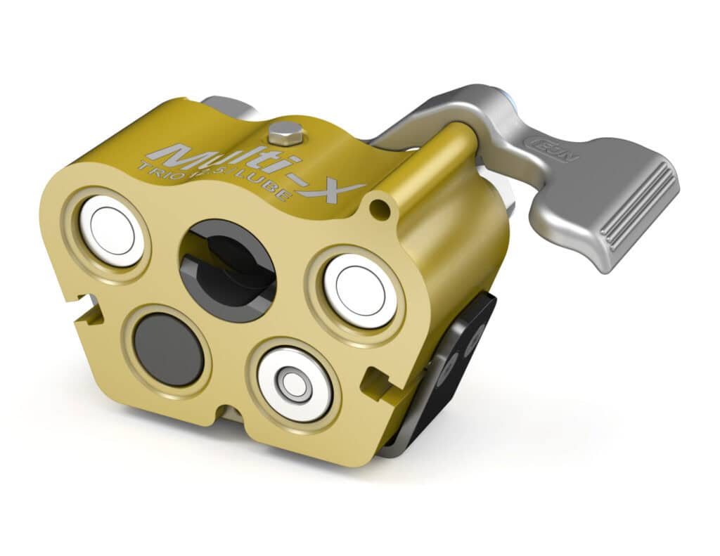 CEJN’s Multi-X Trio 19/Smörjnippel är en multikopplingsplatta med 3 portar, storlek DN19/ Smörjnippel. Alla plattor är designade med spillfria Flat-Face-kopplingar enligt ISO 16028. Nipplar med integrerade tryckeliminatorer säkerställer smidiga anslutningar även vid högt resttryck. Arbetstryck på upp till 35 MPa kan användas på båda 1/2″-portarna samtidigt. Specialkopplingen för centralsmörjning har ett max arbetstryck på 150 bar. Smörjkopplingen har cirkulationsbypass när den är frånkopplad och är ett mycket bra val i centralsmörjsystem Multi-X kan även utrustas med elektriska kontakter.