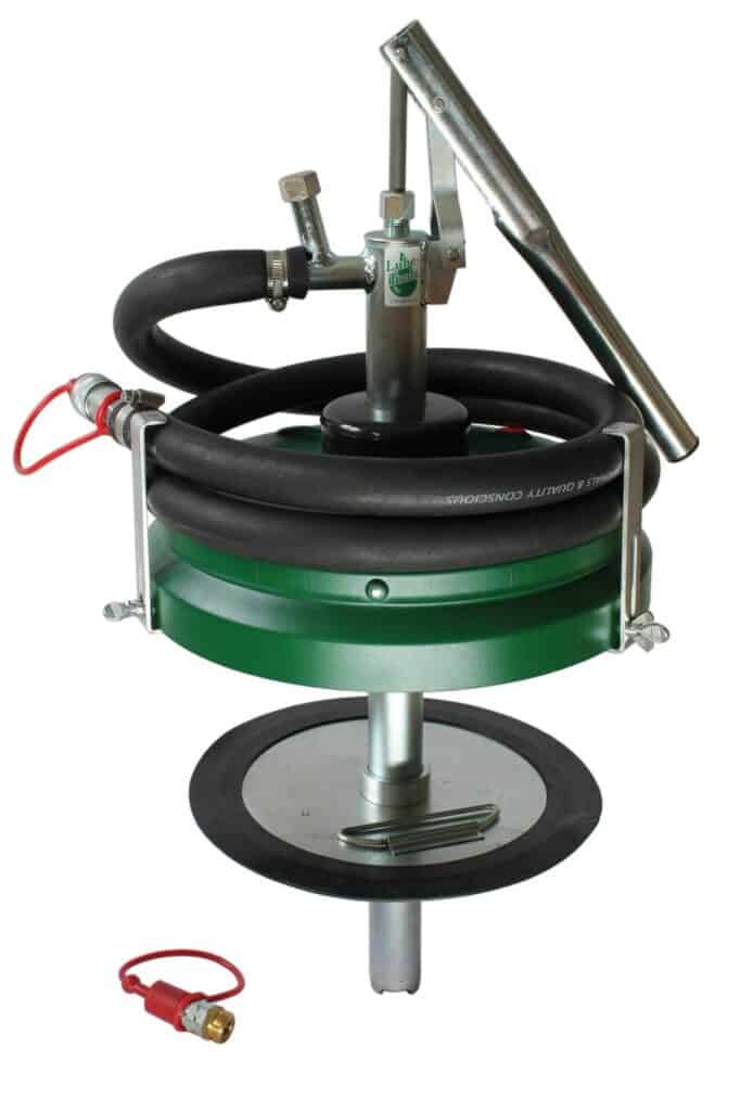 Svensktillverkad smörjspruta i klassiskt utförande, med 450 mm slang och 4-backsmunstycke.