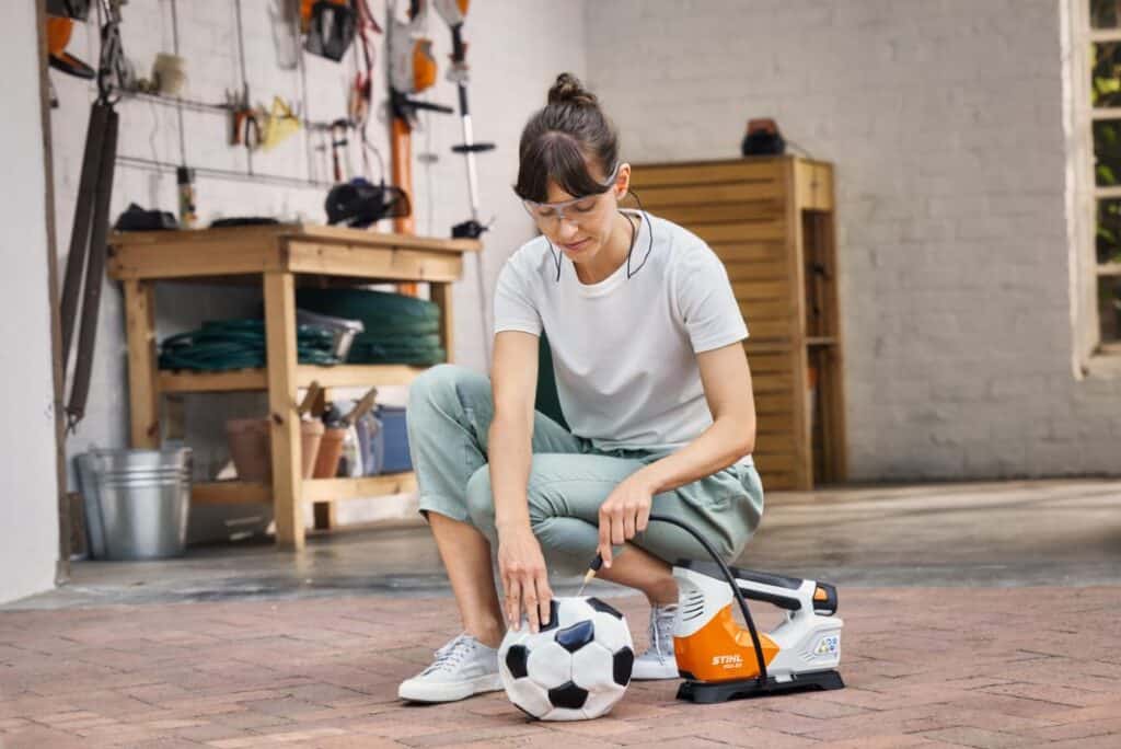 Den kompakta STIHL KOA 20 batterikompressorn är idealisk för enkel och tidsbesparande pumpning av bil- eller cykeldäck samt för bekväm uppblåsning och snabb tömning av fritids- och sportutrustning som bollar eller uppblåsbara båtar. KOA 20 drivs av ett batteri från STIHL AS-systemet. Batterikompressorn KOA 20 är inte bara praktisk i hemmet, utan även på resande fot, t.ex. när hjulen på en släpvagn behöver pumpas upp.