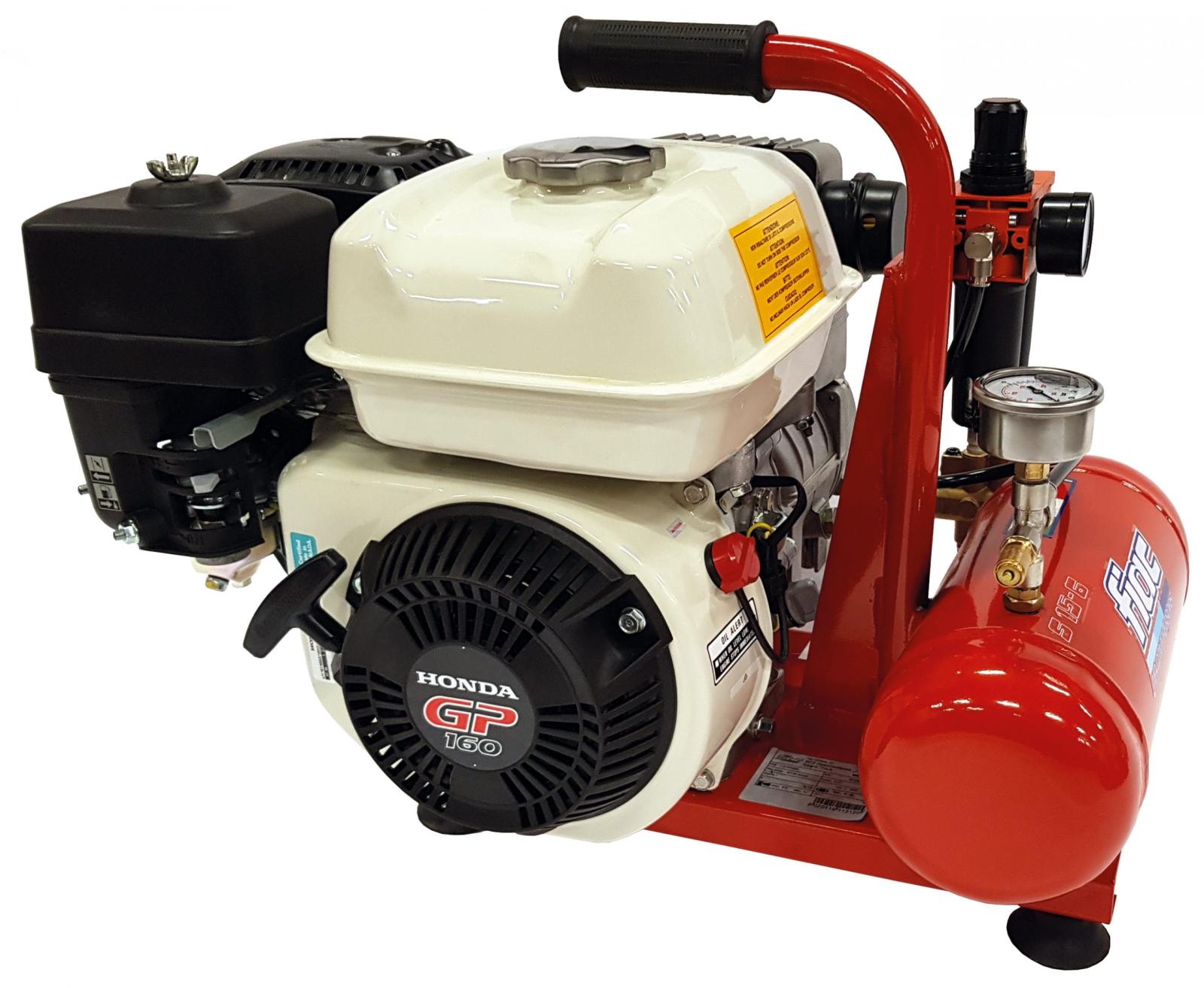 Kompakta bensindrivna kompressorer lämpliga för servicebilar, entreprenörer och andra som har behov av tryckluft på fältet. Kompressorerna är utrustade med Honda motor med elektrisk oljevakt, säkerhetsventil och manometer. Ventilavlastad drift – detta innebär att när trycket är uppe i tanken går den över till tomgångskörning.