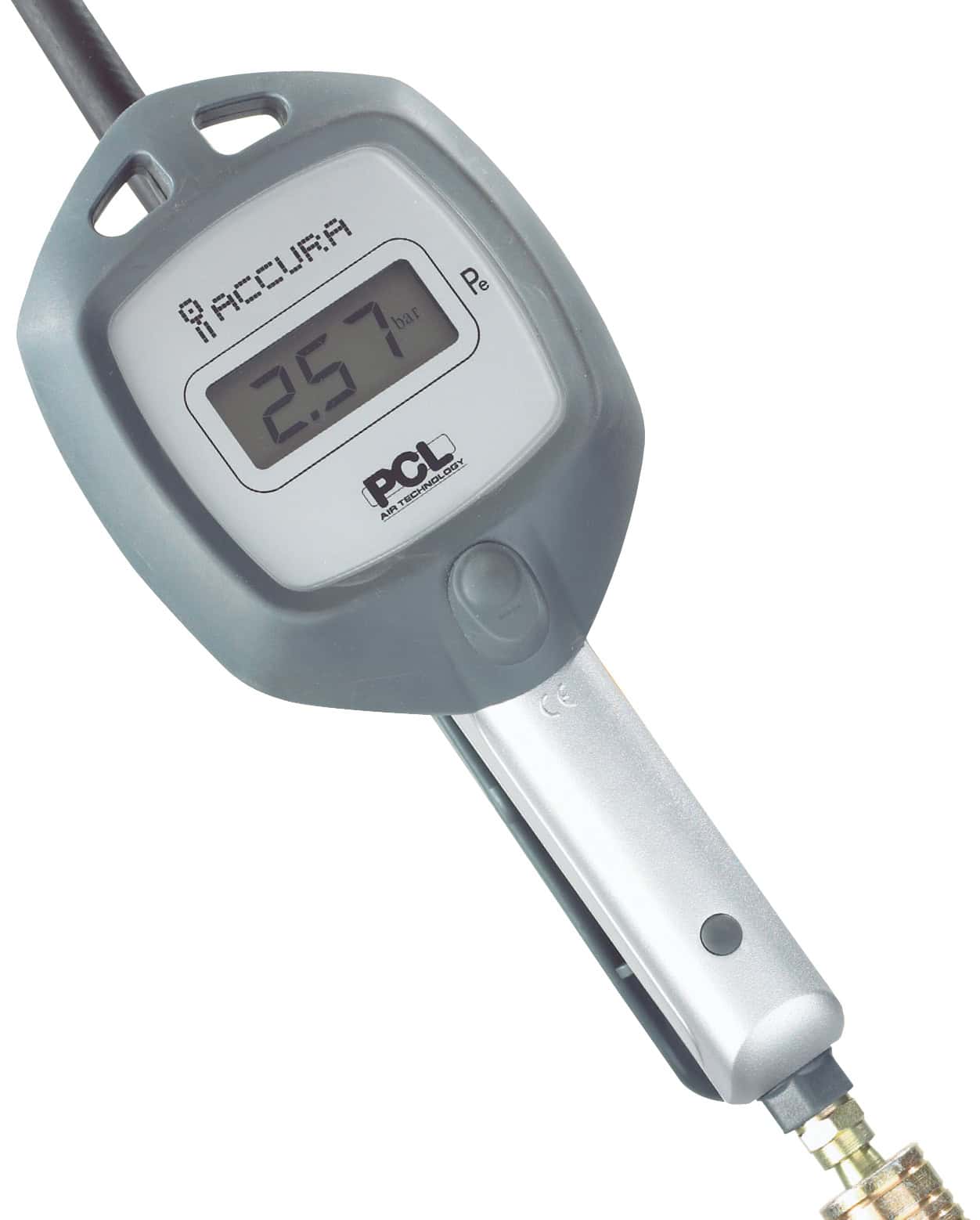 Lufttryckmätare med robust design. Modernt lättvikts och stötabsorberande hölje. Direktverkande ventil för hög flödeshastighet. Individuellt testade. Utrustad med svirvelkoppling. Uppfyller industritoleranserna EC86/217. Den digitala mätaren/påfyllaren är även utrustad med varningssignal vid för högt tryck över 12 bar, och varning vid låg batterinivå.