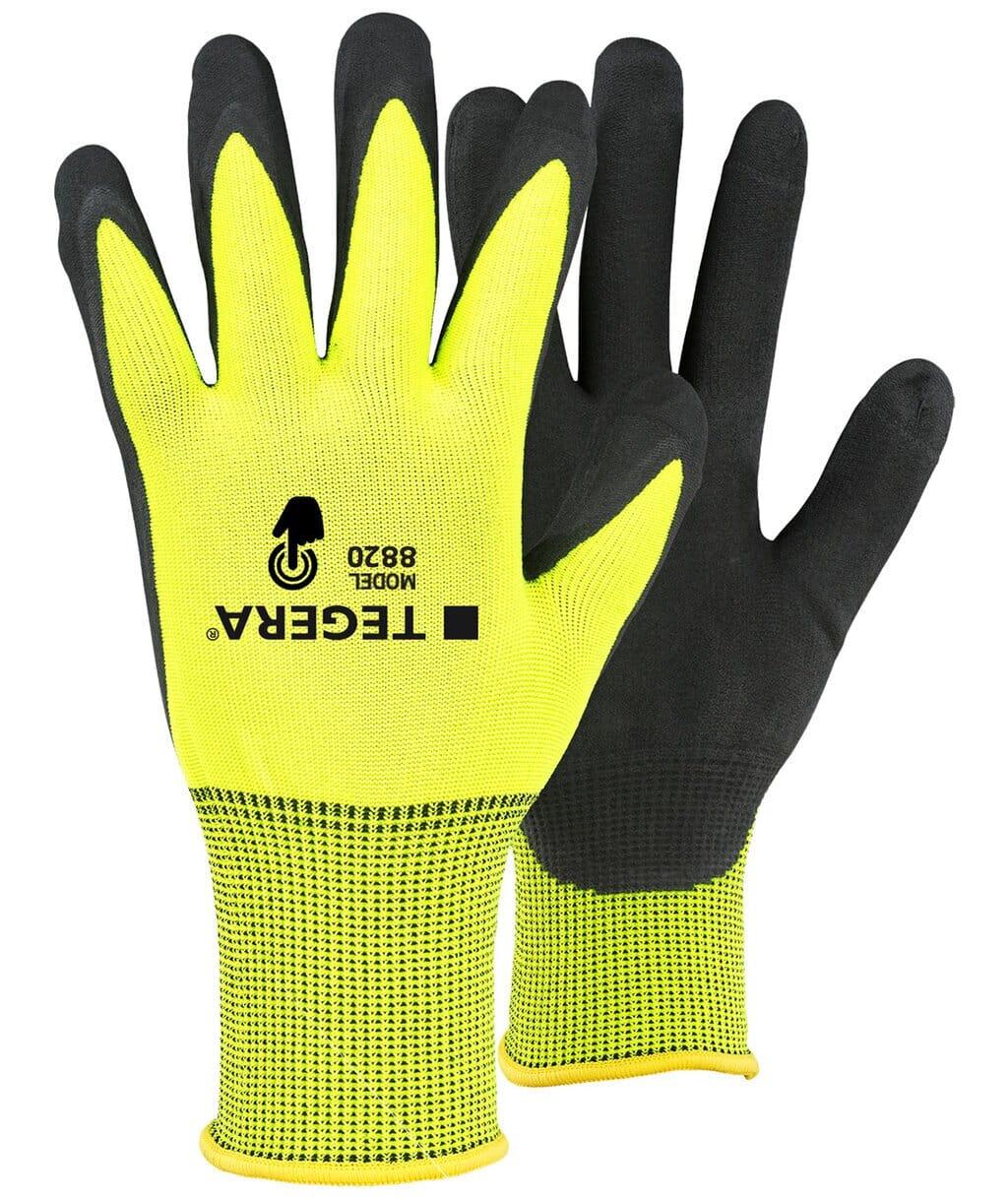 En stickad handske i gul signalfärg för hög synlighet och för precisionsarbete i torra och fuktiga miljöer. Smidig och mjuk. Handsken kan användas på touchscreen och behöver därmed inte tas av och på för olika arbetsuppgifter. Nitril-skum doppning för bästa grepp.15 gg fiber för bekväm användning en hel dag.