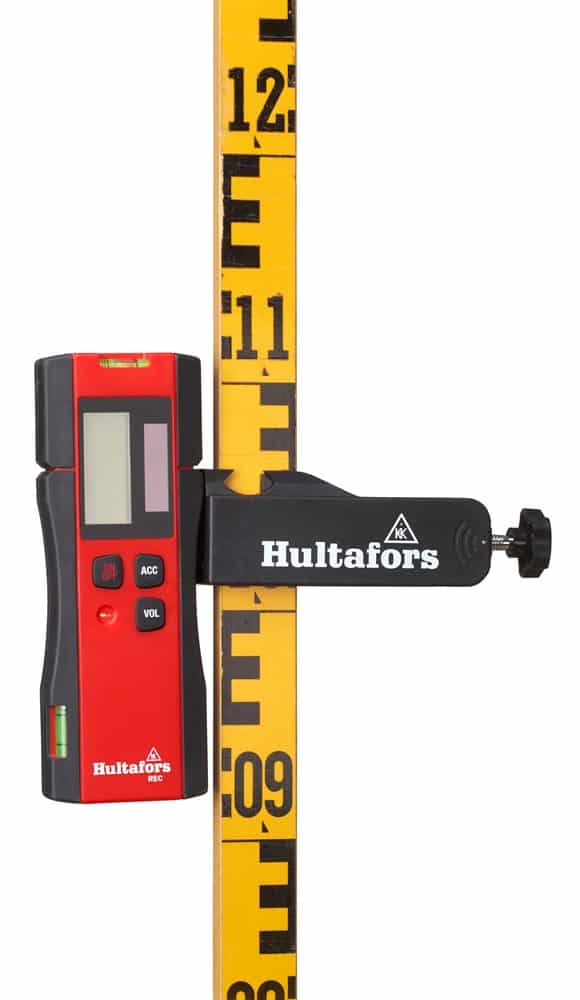 Hultafors REC och RECG används för att enkelt kunna läsa av en laserlinje på långt avstånd eller vid mindre gynnsamma ljusförhållanden. Den har två lägen för känslighet ”Rough” (±2.00 mm) och ”Fine” (±0.50 mm). Volymen går att ställa in på 3 nivåer för att signalen ska höras även i bullriga miljöer. Mottagarna är utrustade med displayer på båda sidor för att underlätta avläsning. Displayen är bakgrundsbelyst vilket underlättar avläsning i mörker. Två libeller hjälper till att placera mottagaren rakt.