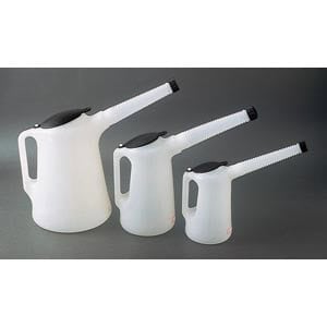 Tillverkad av kraftig olje- och kemikaliebeständig plast. Behållaren är transparent, vilket gör det enkelt att se oljemängden. Böjlig pip, utrustad med lock för att förhindra smuts.