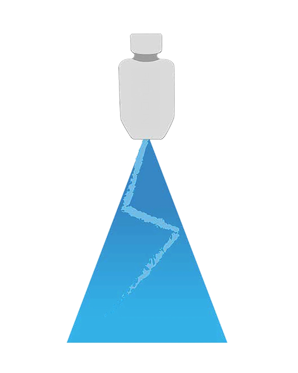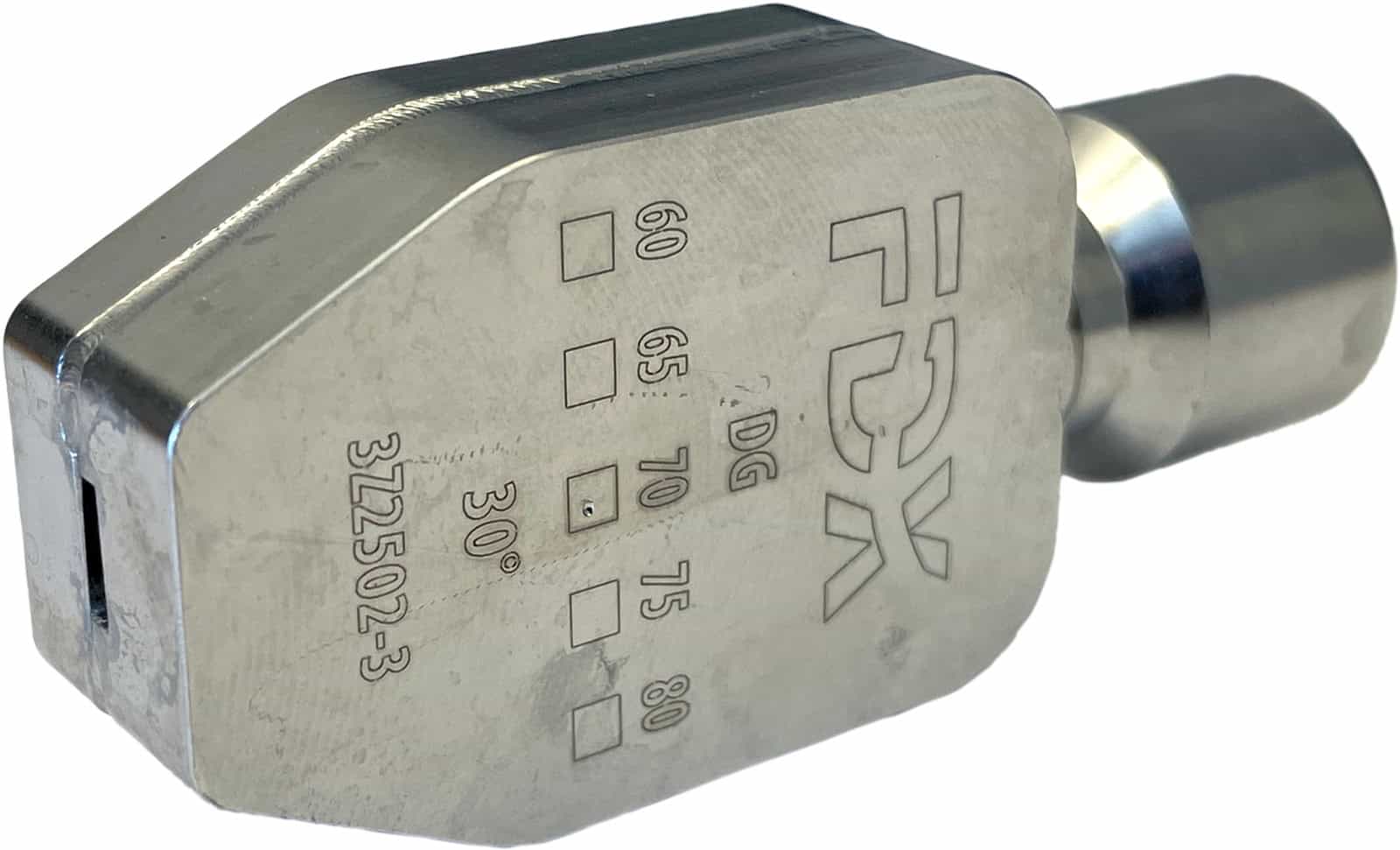 Effektivt rengöringsmunstycke tillverkat i rostfritt stål utan rörliga delar.