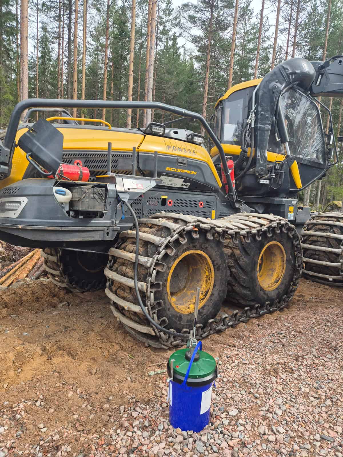 - Tryck 8-30 bar – Klarar att återfylla kedjesmörningssystem på skördare