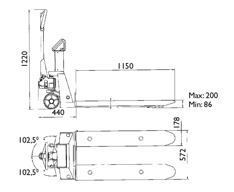 - Gaffellängd: 1150mm