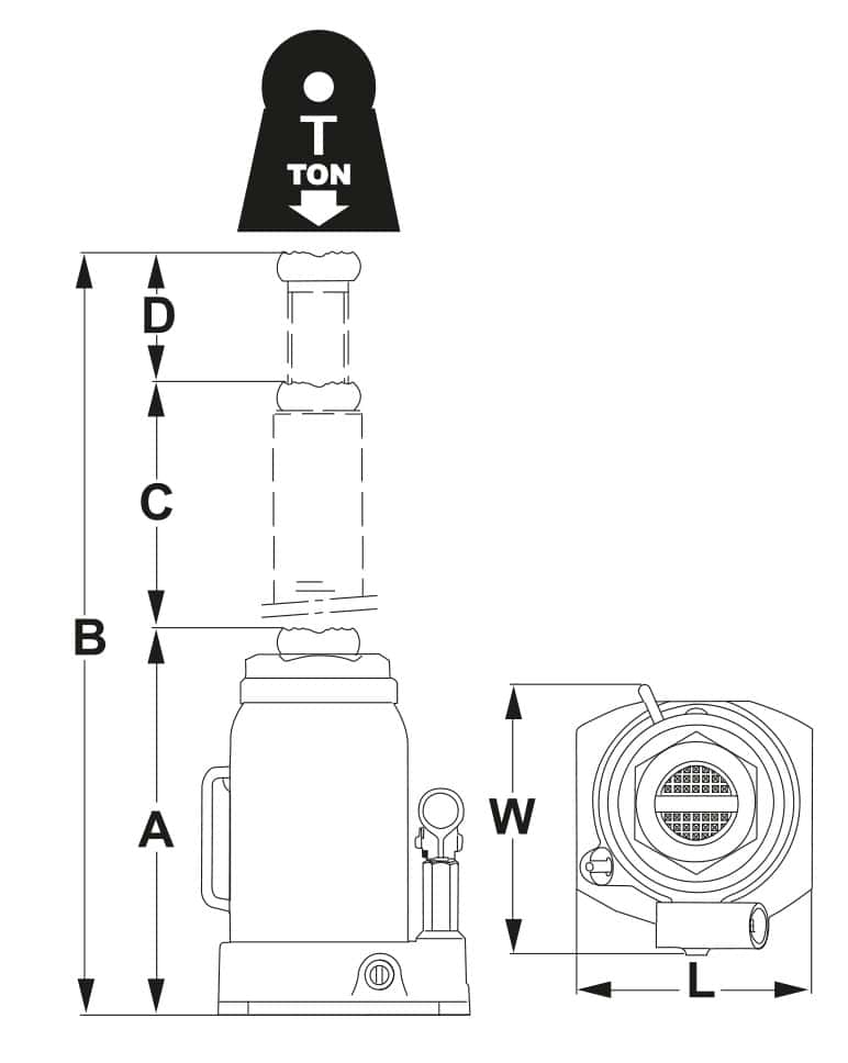 Lyftkapacitet 12 ton. Kompakt konstruktion med spindelförlängare för optimal användning av slaglängden. 2-delat pumphandtag.