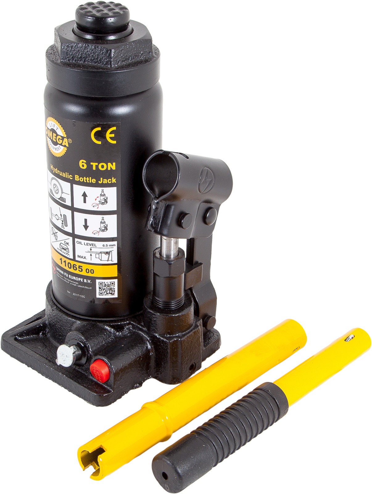 Lyftkapacitet 6 ton. Kompakt konstruktion med spindelförlängare för optimal användning av slaglängden. 2-delat pumphandtag.