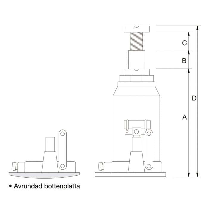 5 modeller med lyftkapacitet från 3 till 12 ton. Modeller med spindelförlängare (se schema) för optimal användning av slaglängden. Modell ATN10-175 har horisontell pumprörelse och lämpar sig därför, extra bra till fordon med låg frihöjd. Modeller med avrundad bottenplatta (se schema) ökar stabiliteten och säkerheten eftersom domkraften följer fordonets lutning under lyft. 3-delat galvaniserat pumphandtag för enkel förvaring. Inbyggd säkerhetsventil skyddar mot överbelastning. Alla modeller kan användas från -20° till +70°.