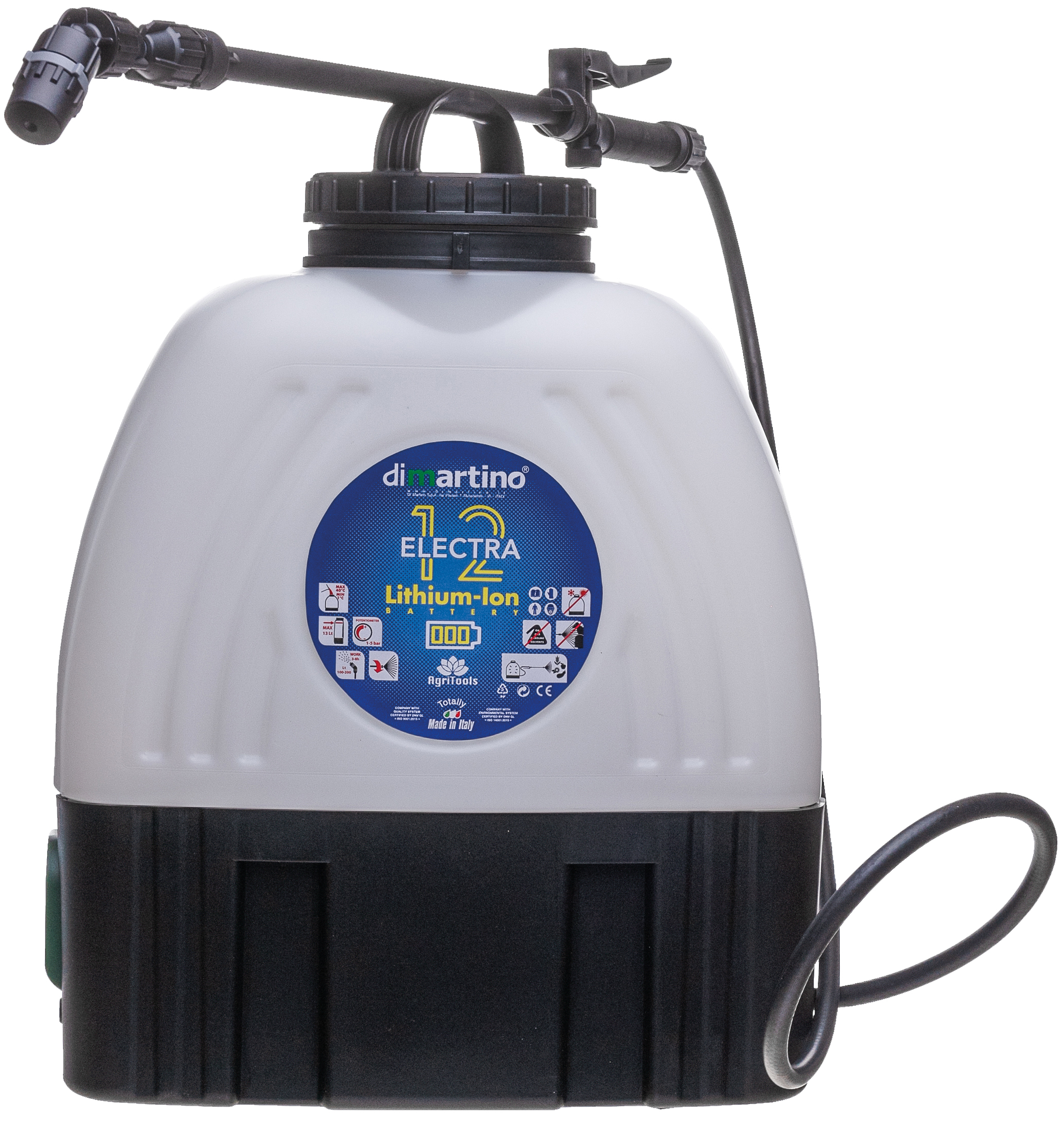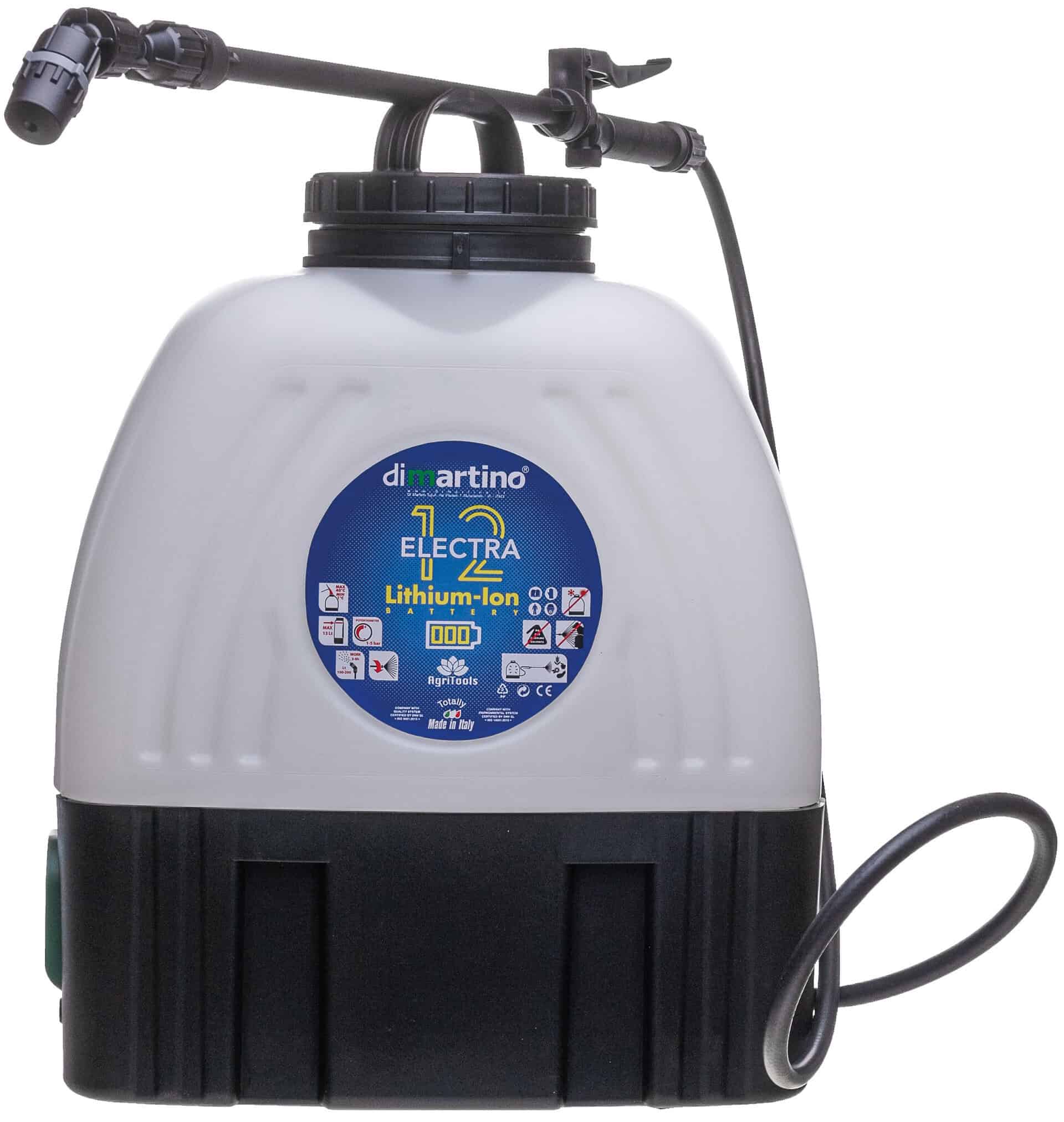 En säker och effektiv ryggspruta med 12V Litium-ion batteri. Flödet går att ställa steglöst mellan 1-5 bar. Lämplig för trädgårdar och algbekämpning. Levereras med batteri och laddare samt 3 st munstycken. Membran av EPDM och packningar av NBR.