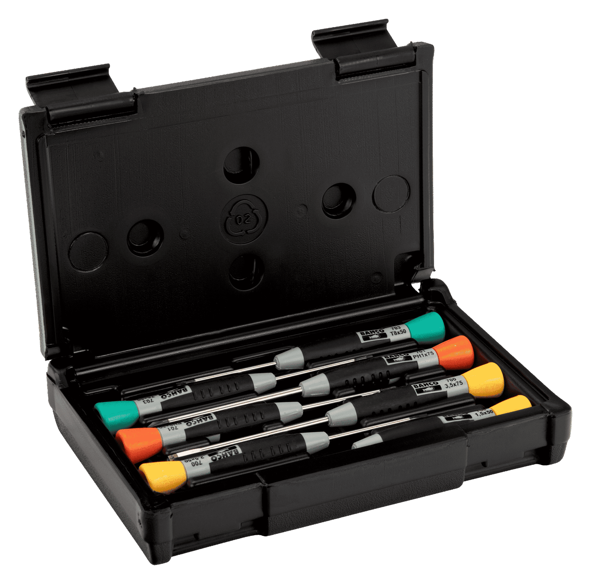 Skruvmejselsats för spårskruv, Phillips-, Pozidriv-, Torx®-skruv, med precisionsgrepp – 7 st. 706-4