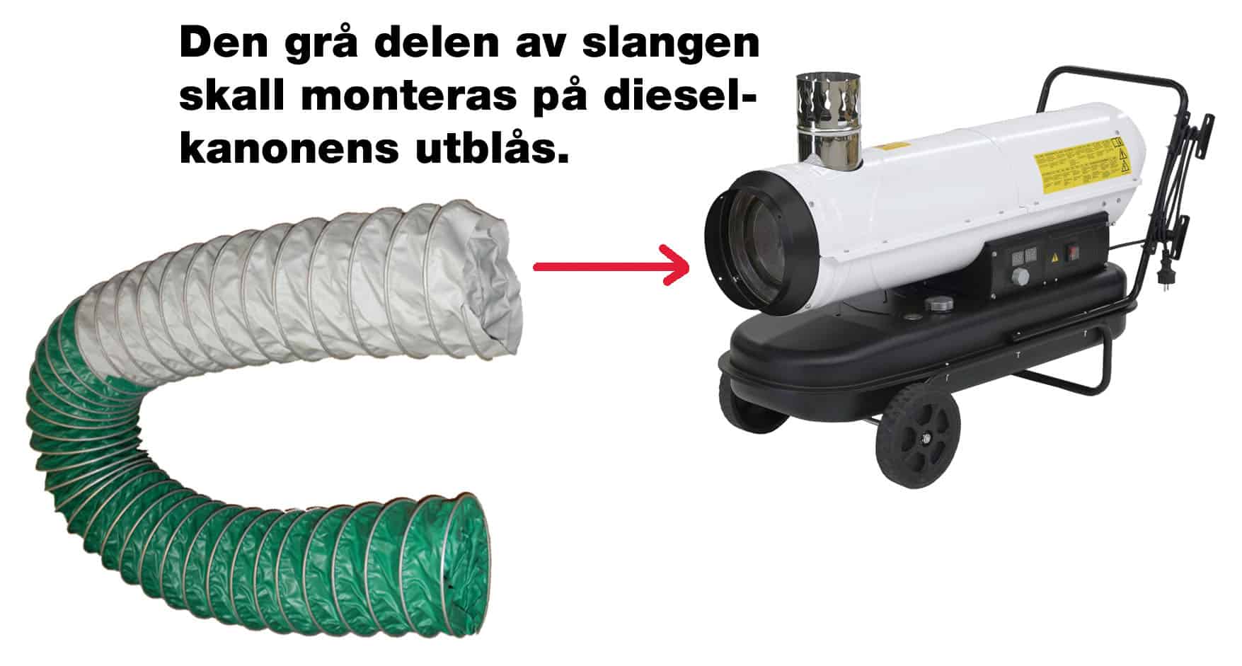 Om du placerar dieselkanonen utomhus kan du leda in värmen med den här slangen.