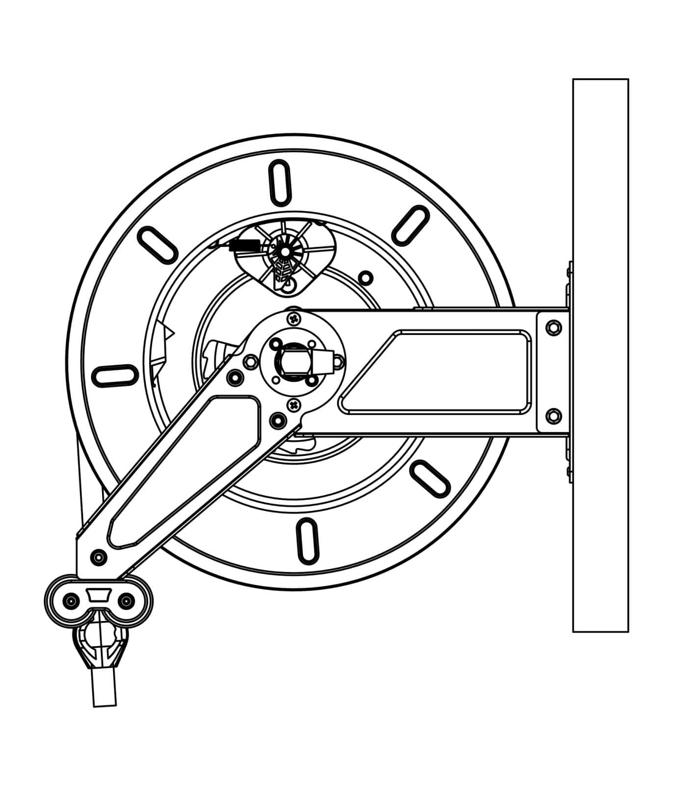 Slangvindor försedda med ställbara utmatningsarmar. Lätta att placera, även i trånga utrymmen. Kan även takmonteras. Kan kompletteras med svängbart väggfäste om slangen skall dras ut eller matas in i sidled. Slitaget på vindan blir mindre och slangen rullas upp jämnare. Vattentemperatur max 150 °C. Stålarmerad gummislang.
