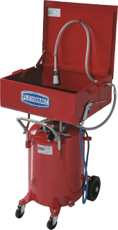 Smådelstvätt i målat stål, med slutet kretslopp av rengöringsvätska. Består av en förvaringsbehållare med en kapacitet på 65 liter, utrustad med två hjul och två pivåhjul, en rengöringsbassäng med avtagbart och stängbart lock, samt en vätskepermeabel rengöringsborste som möjliggör ett kontinuerligt flöde av rengöringsmedlet för noggrann rengöring av delar. Utrustad med blåspistol med fast utgång. Systemet möjliggör kontinuerlig cirkulation av vätskan genom att trycksätta behållaren med tryckluft på max 0,5 bar.