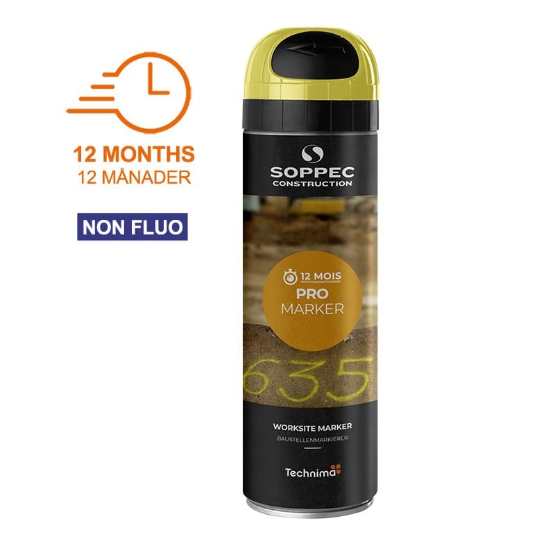 Markeringsfärg i sprayflaska som finns i flera solida färger. Tack vare sin goda täckförmåga syns din markering bra även på lite avstånd. Markeringsfärgen används med fördel vid bland annat vägarbeten, markarbeten, rörläggning, bygg, vid elektriska installationer mm. Enkel att använda och fäster bra även på fuktiga underlag, som t.ex. betong, asfalt, gräs, grus, trä mm. Färgens varaktighet är 9–12 månader.