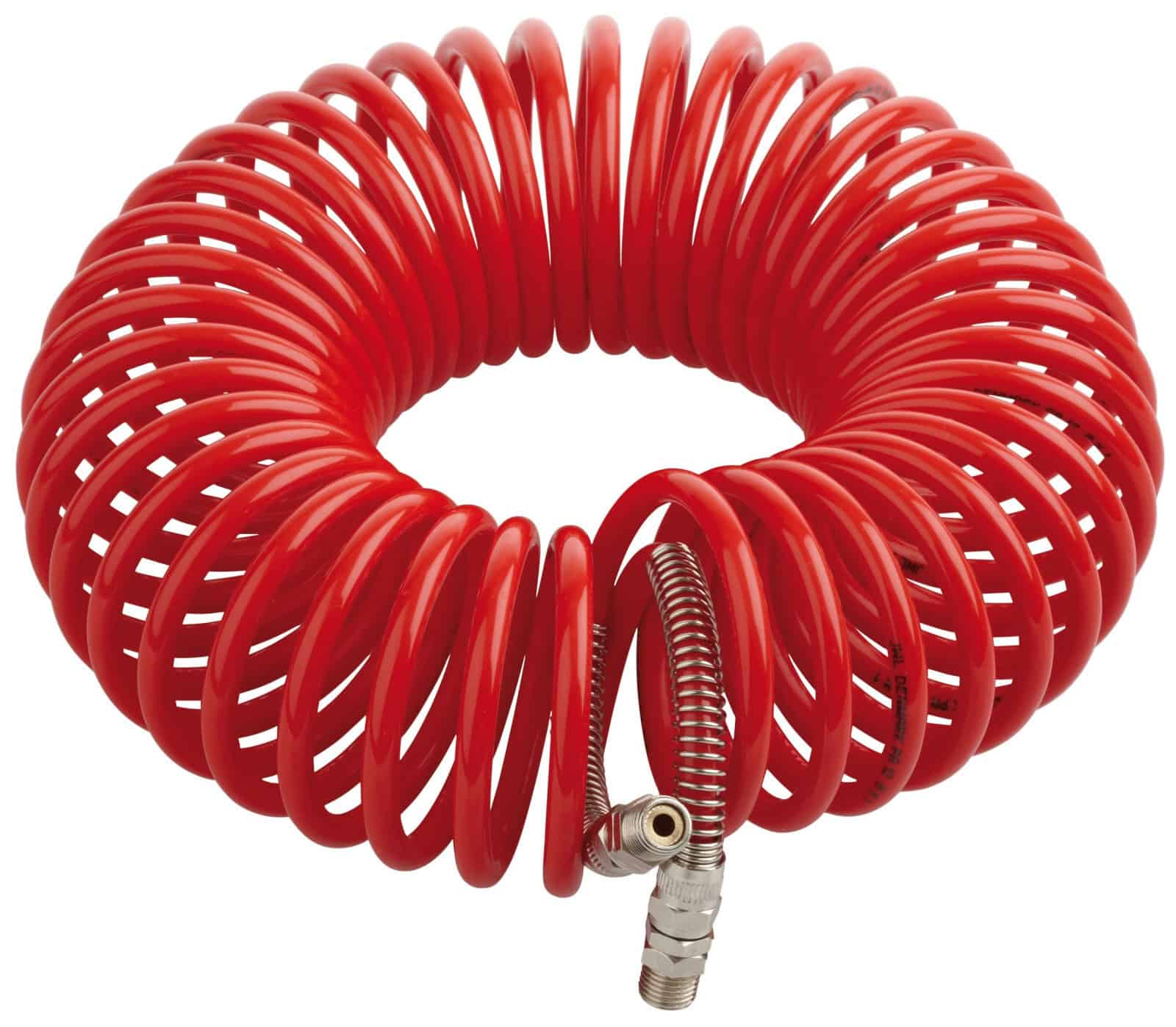 Denna serie av nylon-spiralslangar används ofta i miljöer där det krävs en extra stryktålig tryckluftslang. Den är mycket tålig för höga temperaturer och tryck – samtidigt så håller den spiralformen bra. Är tålig mot solsken. Utrustad med brytskydd i metall.