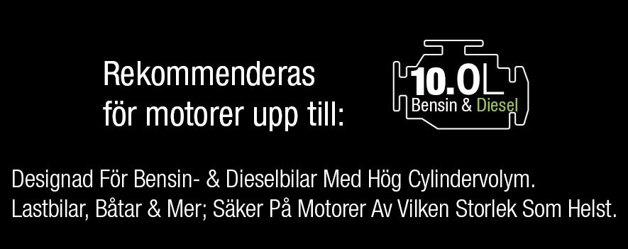 Rekommenderas för motorer upp till: 10,0 liter bensin & diesel