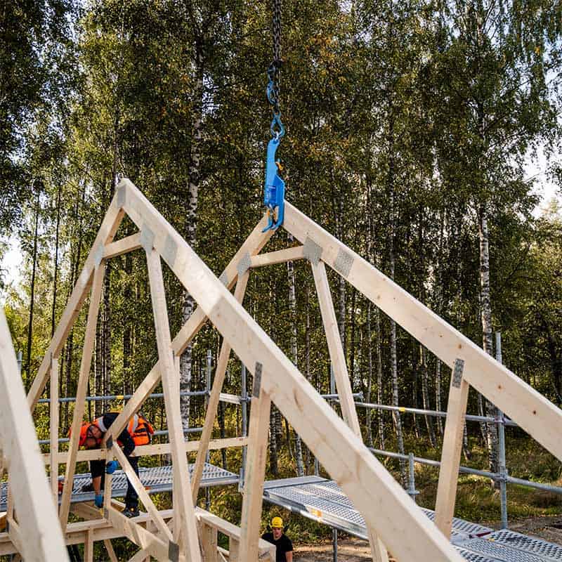 Vi har den unika Takstolslyften TL som är det säkraste och effektivaste sättet att lyfta balkar och takstolar.