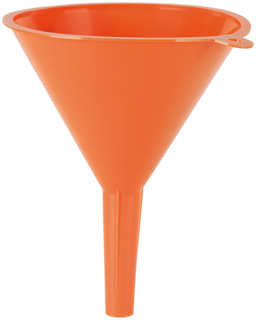 Tratt av polyeten, utan sil. Kemikalie-, olje-, syra- och bränslebeständig. Utan överloppsrand. Trattdiameter 120 mm. Pipens längd 80 mm. Volym 0,27 ml.