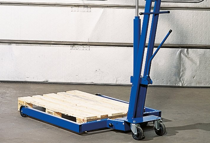 Perfekt kran vid lastning och avlastning av föremål direkt på en EUR-pall