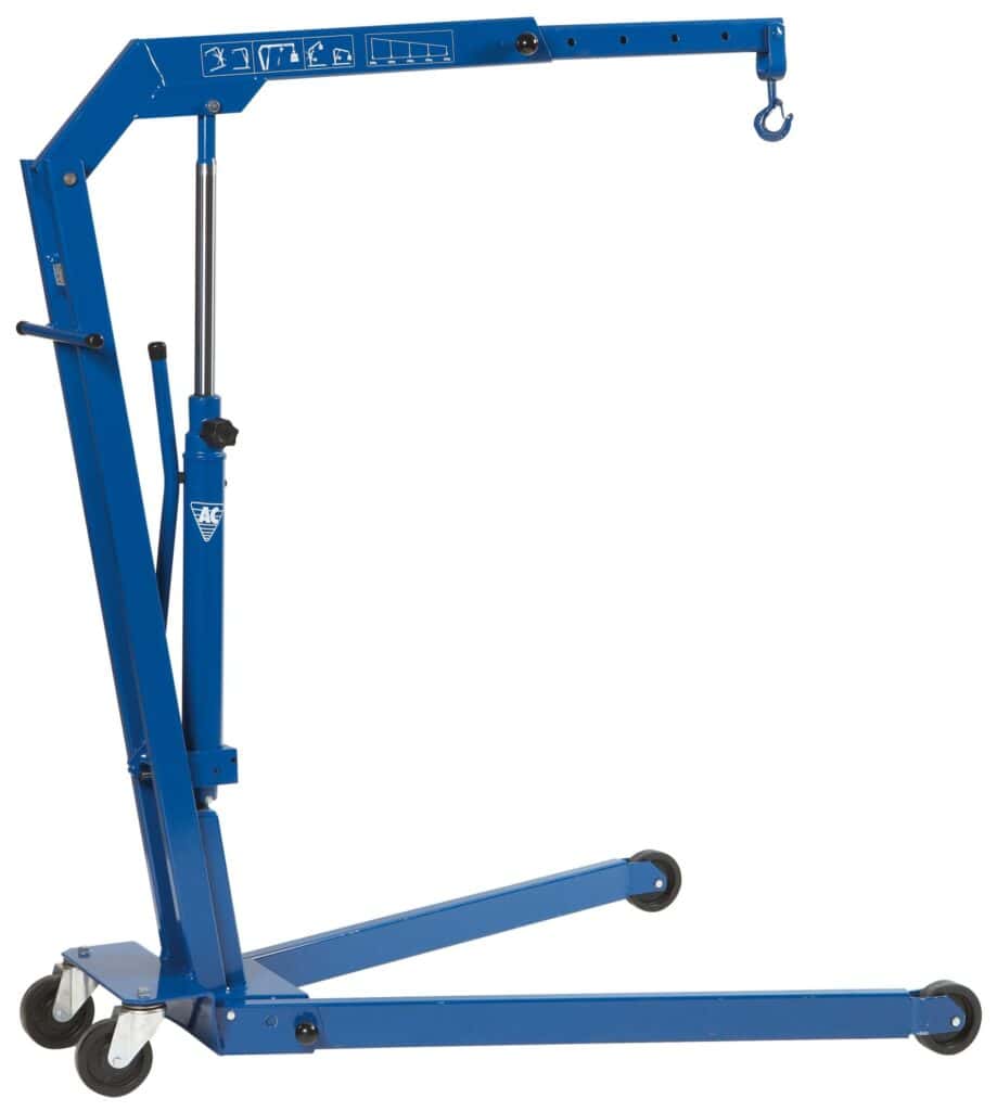 Hopfällbar verkstadskran, 600 kg, för att lyfta och stötta en mängd olika tunga fordonsdelar, t.ex. motorer, växellådor m.m.