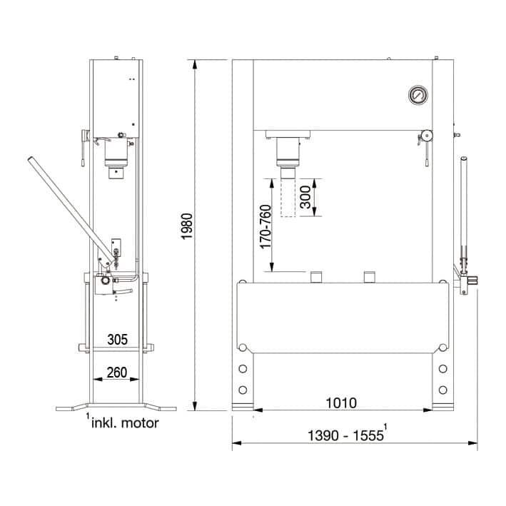 Fotmanövrerad dubbelverkande pneumatisk höghastighetsmodell som låter användaren ha båda händerna fria för snabb och exakt positionering av objekt. Sidledes flyttbar cylinder. Med 300 mm slaglängd för krävande uppgifter Bred och helsvetsad ram och pressbord säkrar stor flexibilitet. Vinschmanövrerat pressbord Inbyggd säkerhetsventil Avtagbar trycksko för montering av olika pressdon. Inkl. 2 riktstäd.