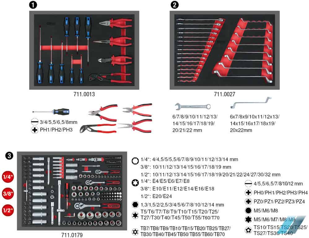 Verktygsvagn 215 delar, sju lådor