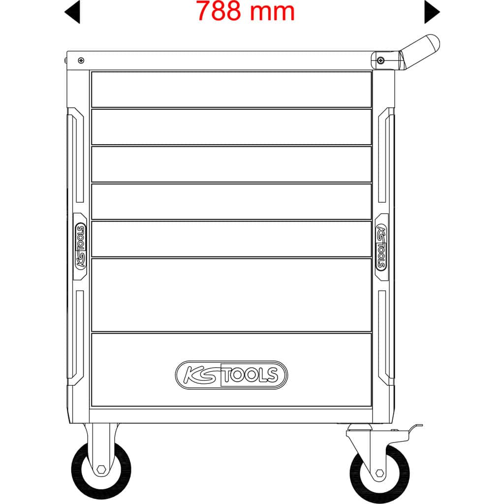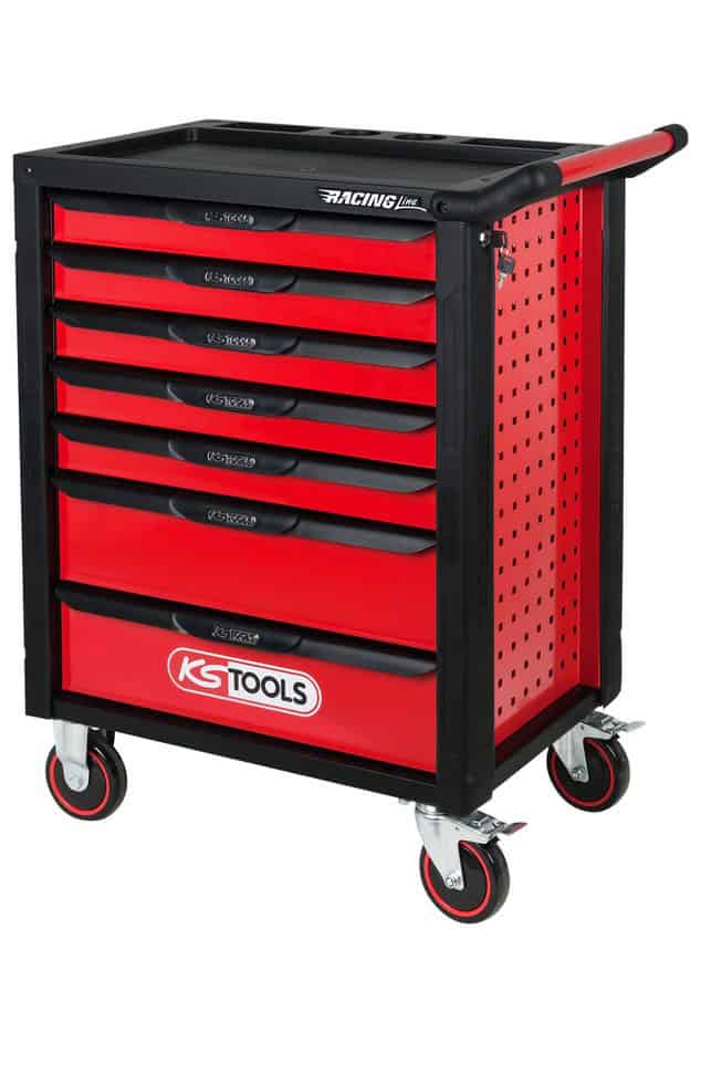 KS Tools kraftig verktygsvagn i Racingline serien med spärrade lådor som enbart kan öppnas när man vill.